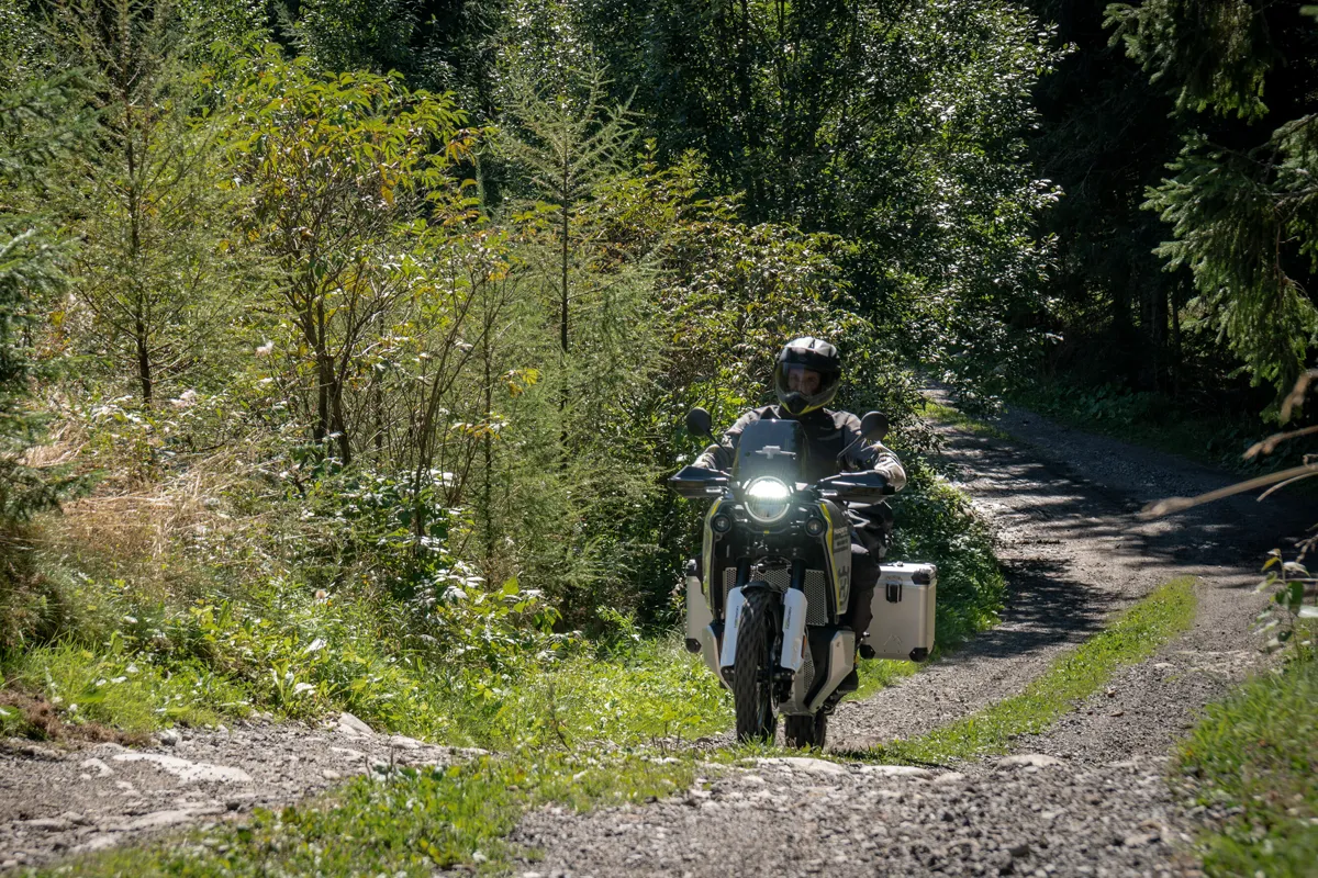 El control y la comodidad ocupan un lugar destacado en la lista de exigencias de la Norden 901. Con 220 mm de recorrido, las horquillas delanteras invertidas WP APEX de 43 mm ofrecen rendimiento y comodidad de nivel superior en cualquier entorno, ya sea que eso signifique un manejo tenso en asfalto o allanando el camino offroad. Puede variar rápida y fácilmente las características de marcha para adaptarlas a sus preferencias y a las diferentes condiciones gracias a la capacidad de ajuste de la compresión y la amortiguación de extensión de las horquillas. Asimismo, el amortiguador trasero WP APEX ofrece un generoso recorrido de 215 mm y es ajustable en extensión y precarga del resorte para adaptarse a las carreteras por las que circula y a las cargas que transporta. Ajustar la configuración es rápido y fácil, de modo que cuando las condiciones cambian, puedes configurar la suspensión para que coincida con ellas. Con la comodidad y el control de una suspensión compatible, hay menos límites para la distancia que te llevarán tus viajes.
