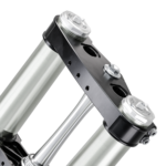 Las pletinas de dirección mecanizadas anodizadas en negro ofrecen una calidad excelente de serie en toda la gama de modelos de enduro de Husqvarna. Ofrecen un avance cuidadosamente calculado de 22 mm y están expertamente fabricadas con técnicas y materiales superiores para ofrecer los más altos niveles de calidad y fiabilidad. Las abrazaderas de manillar ofrece una mayor superficie de apoyo de los manillares ProTaper para reducir las torsiones en caso de caída, y ofrece dos opciones de fijación para una ergonomía personalizable.