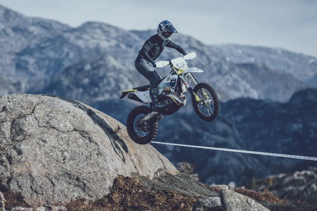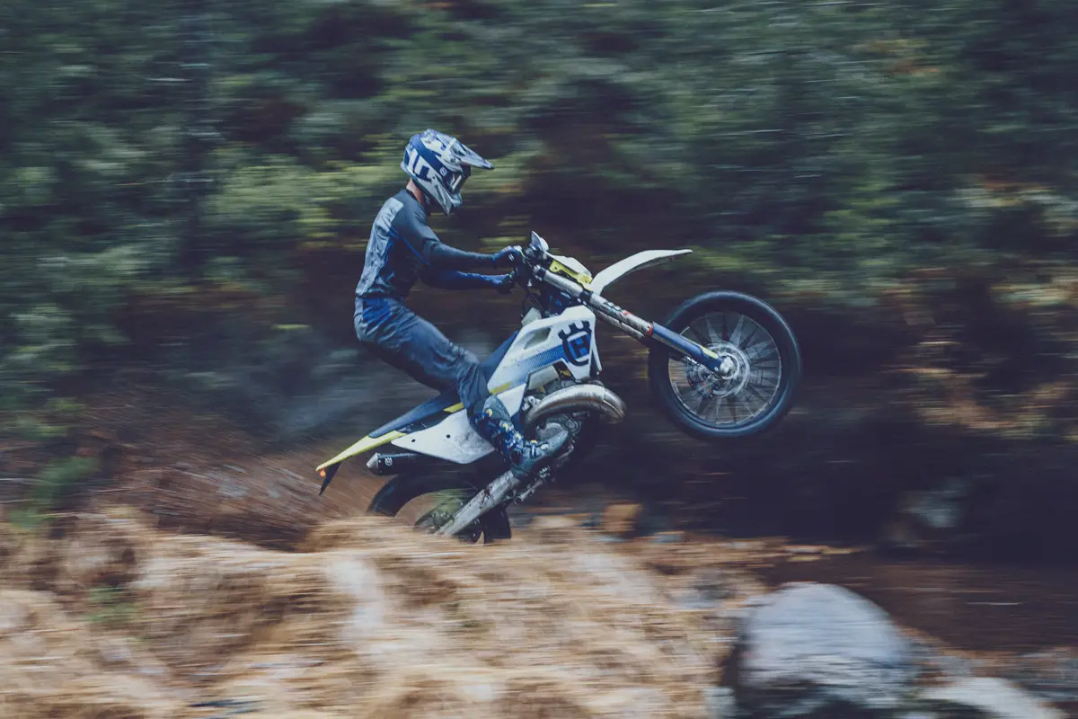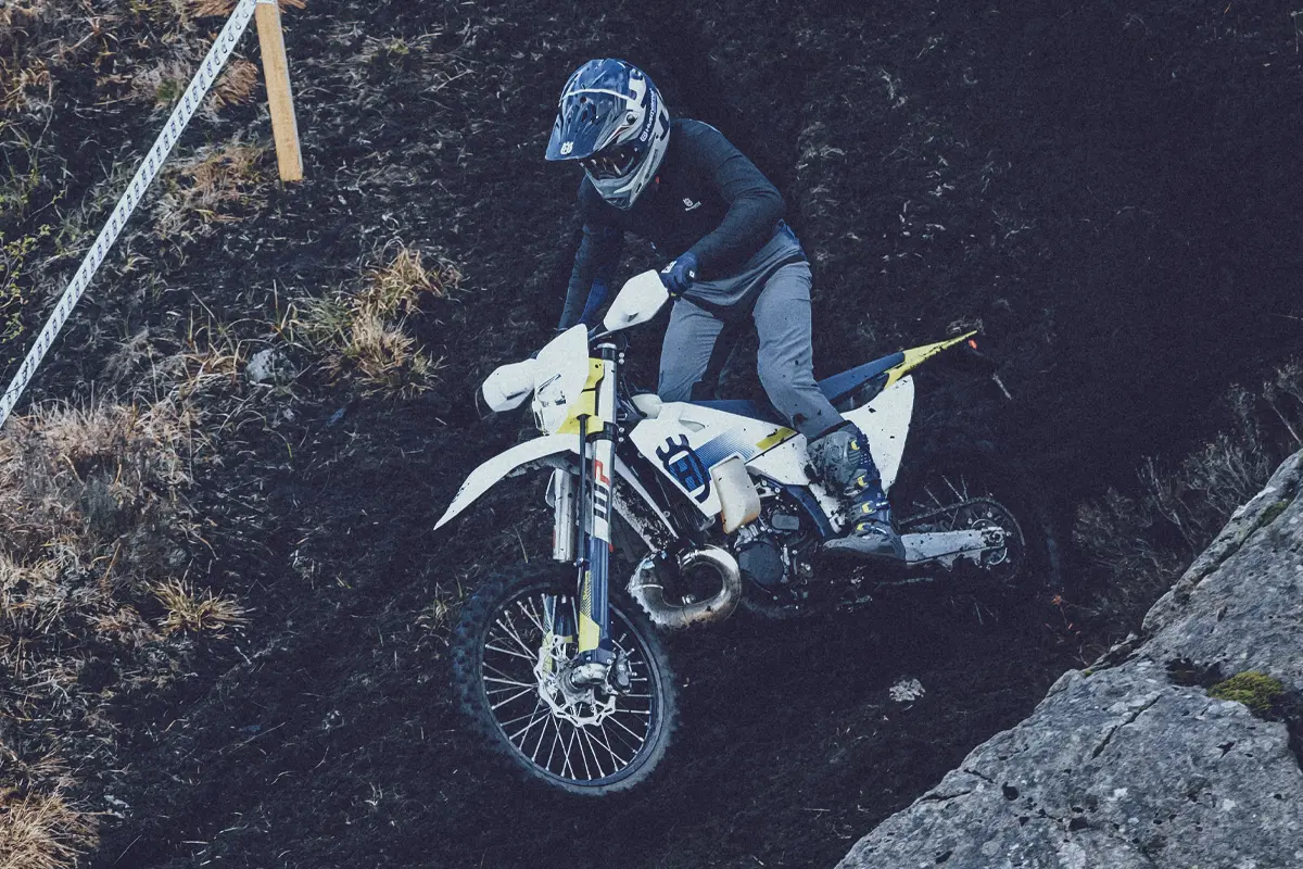 Cada una de las máquinas de enduro de Husqvarna Motorcycles está equipada ahora con horquillas WP XACT de muelle y cartucho cerrado. Diseñada y desarrollada para los rigores del pilotaje de enduro, esta horquilla ofrece un rendimiento constante gracias al diseño de muelle y cartucho cerrado que optimiza el flujo de aceite y evita la formación de espuma. La incorporación de un nuevo sistema hidrostop, efectivo en los últimos 68 mm de recorrido, es muy eficaz en los aterrizajes bruscos para mantener el máximo impulso hacia delante. Además, los pilotos pueden modificar los ajustes de compresión y extensión rápida y fácilmente mediante los mandos reguladores manuales y sin necesidad de herramientas que se encuentran en la parte superior e inferior de cada pata de la horquilla.
